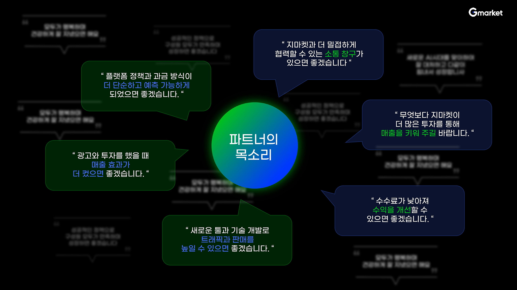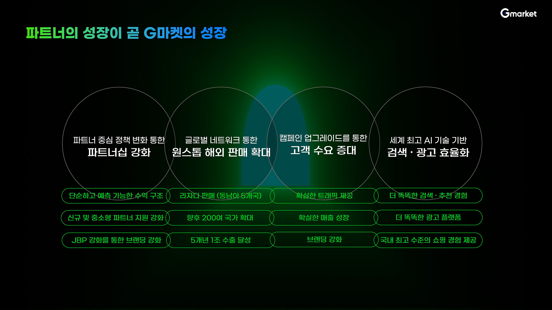 네 가지 방향을 통해 판매자님의 성장과 G마켓의 미래를 함께 설계하기 위한 자리였습니다.