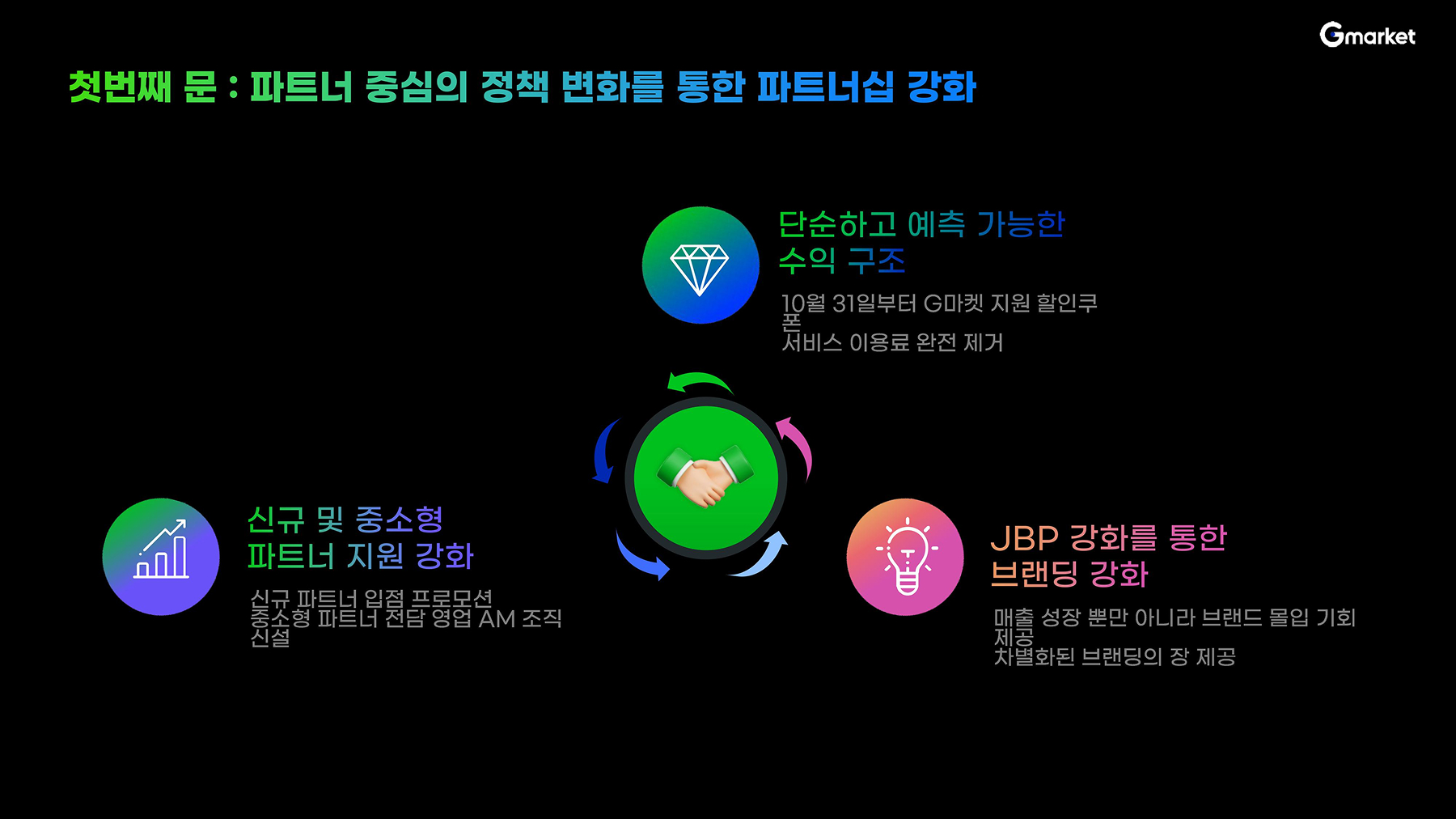 G마켓은 언제나 ‘파트너 중심’의 가치를 최우선으로 생각합니다.